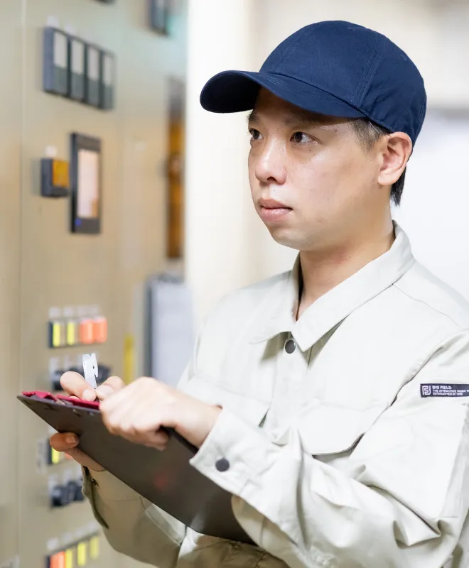 配電盤の操作、電力計の監視・点検など、電気設備の基本運転を行います。